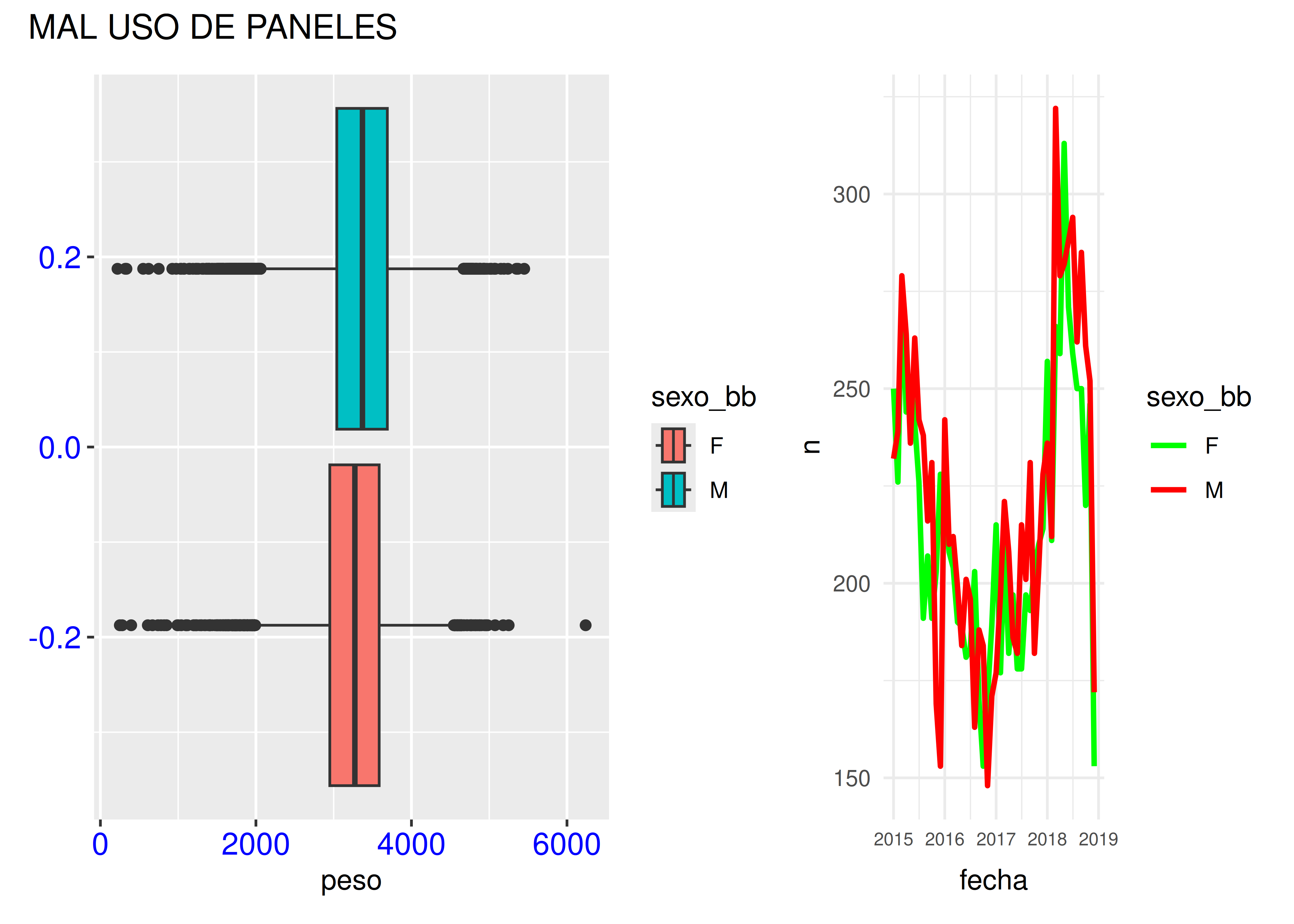 - Cuando la cantidad de información visualizada es abundante, resulta importante aclarar bien qué variable(s) estamos viendo en cada panel. En este sentido, el paquete