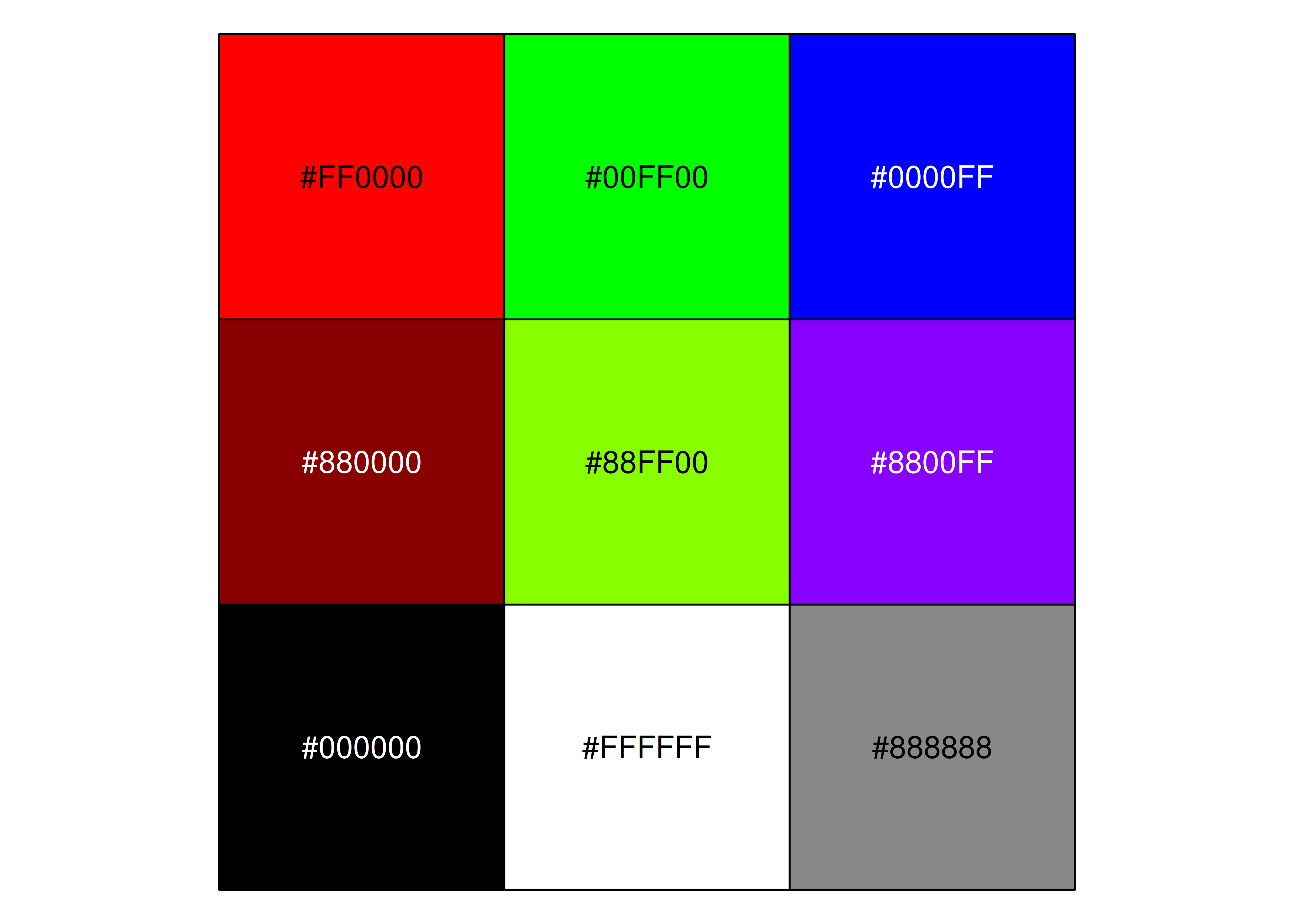 "#FF0000", "#00FF00", "#0000FF",