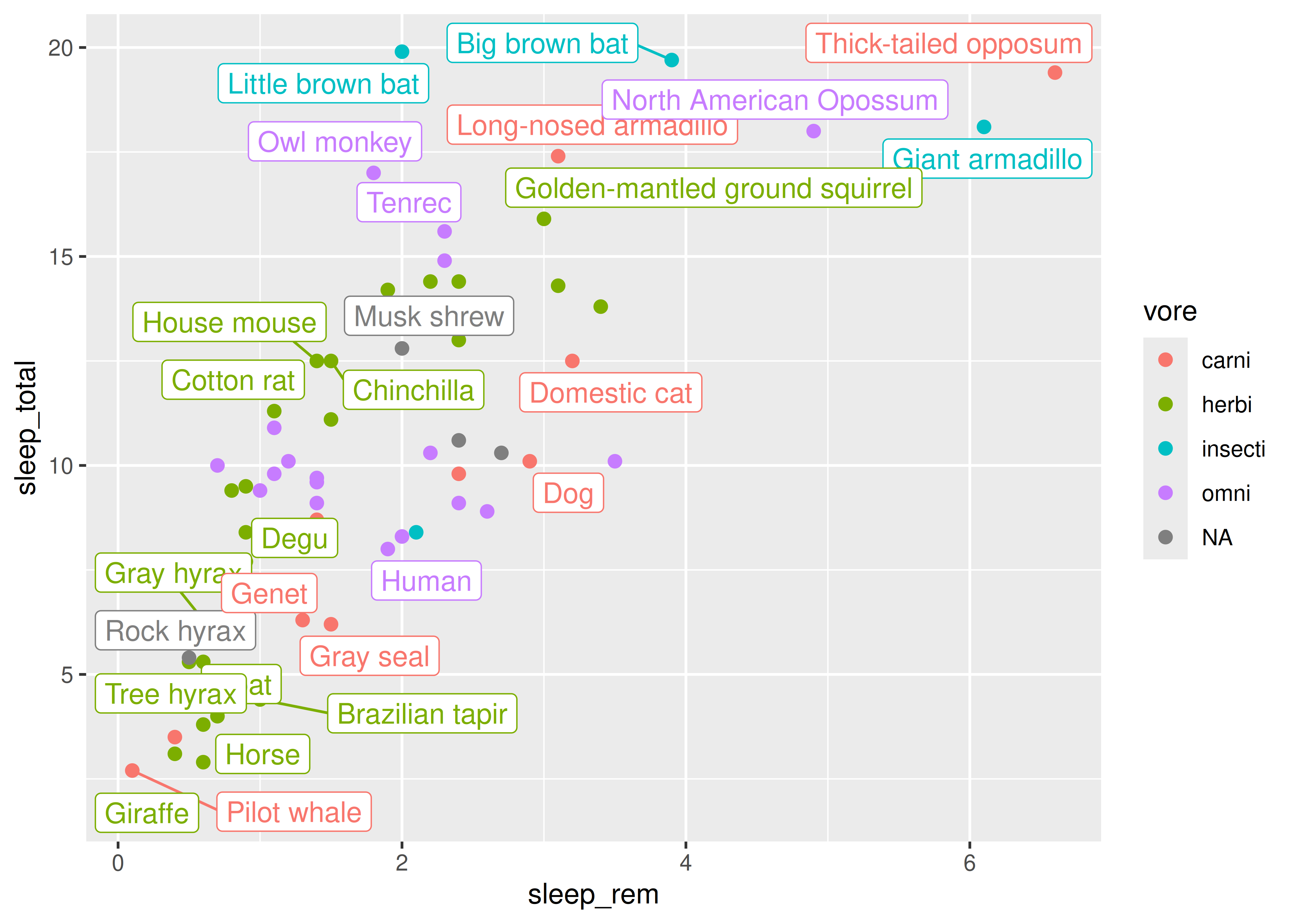 ggplot2llamadomsleep, el cual presenta datos sobre características del sueño de 83 especies de mamíferos.Ejecutando