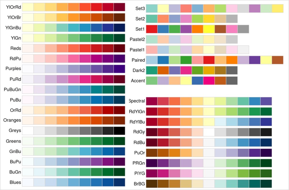 Unas de las más conocidas son las paletas de Brewer, mencionadas en la primera clase de la materia: