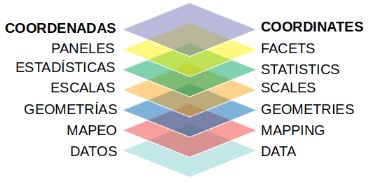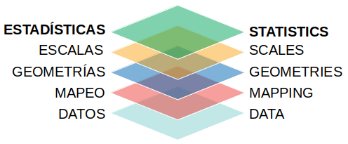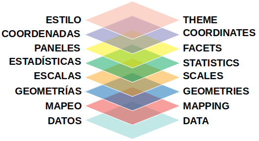 ggplot2. - La idea fundamental es pensar a un gráfico como una superposición de elementos que lo componen, llamadas capas o layers: