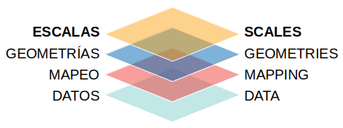 - Si ahora queremos modificar las configuraciones elegidas por default para cada uno de los mapeos, necesitamos invocar a las capas de scales: