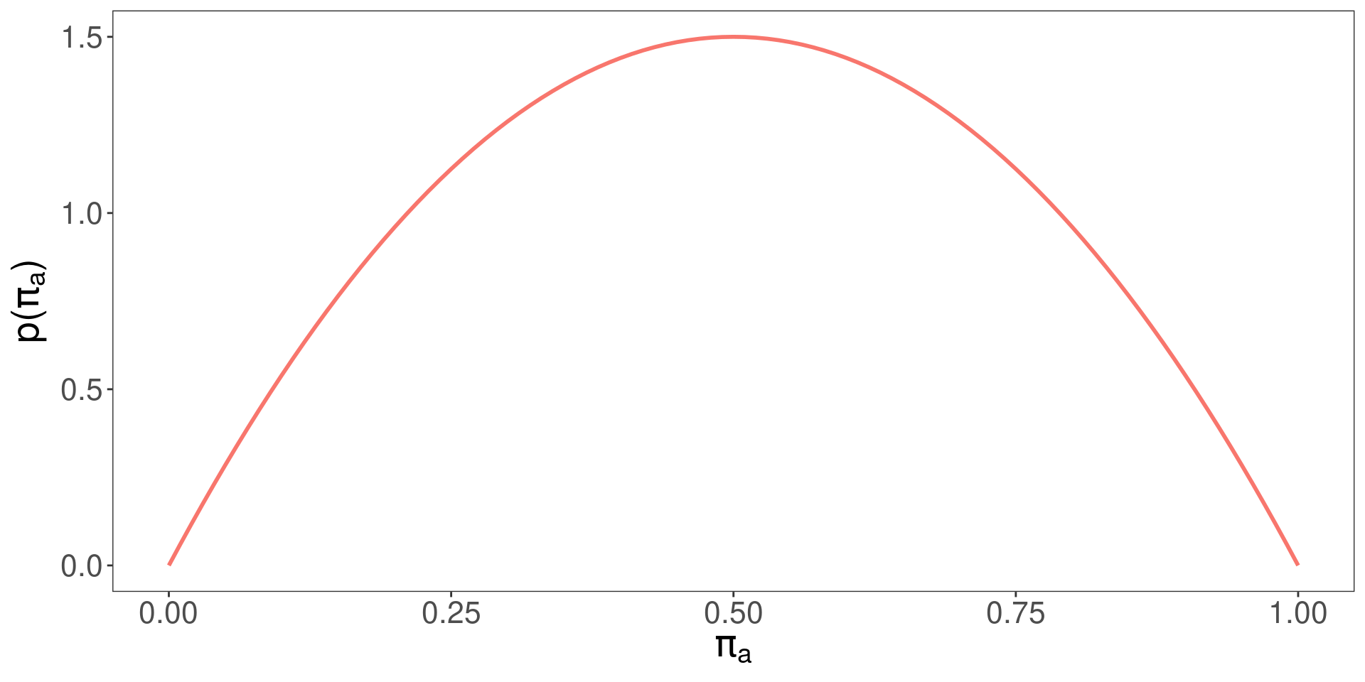 \[ \pi \sim \mathrm{Beta}(a,b) \]