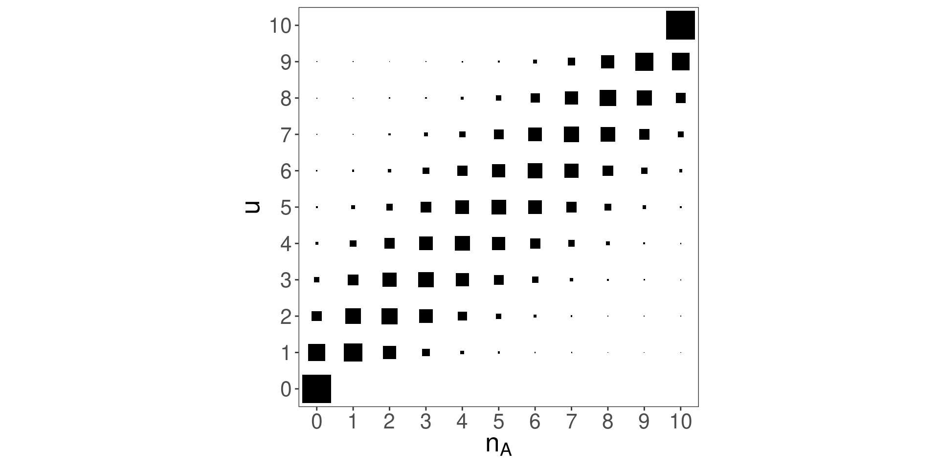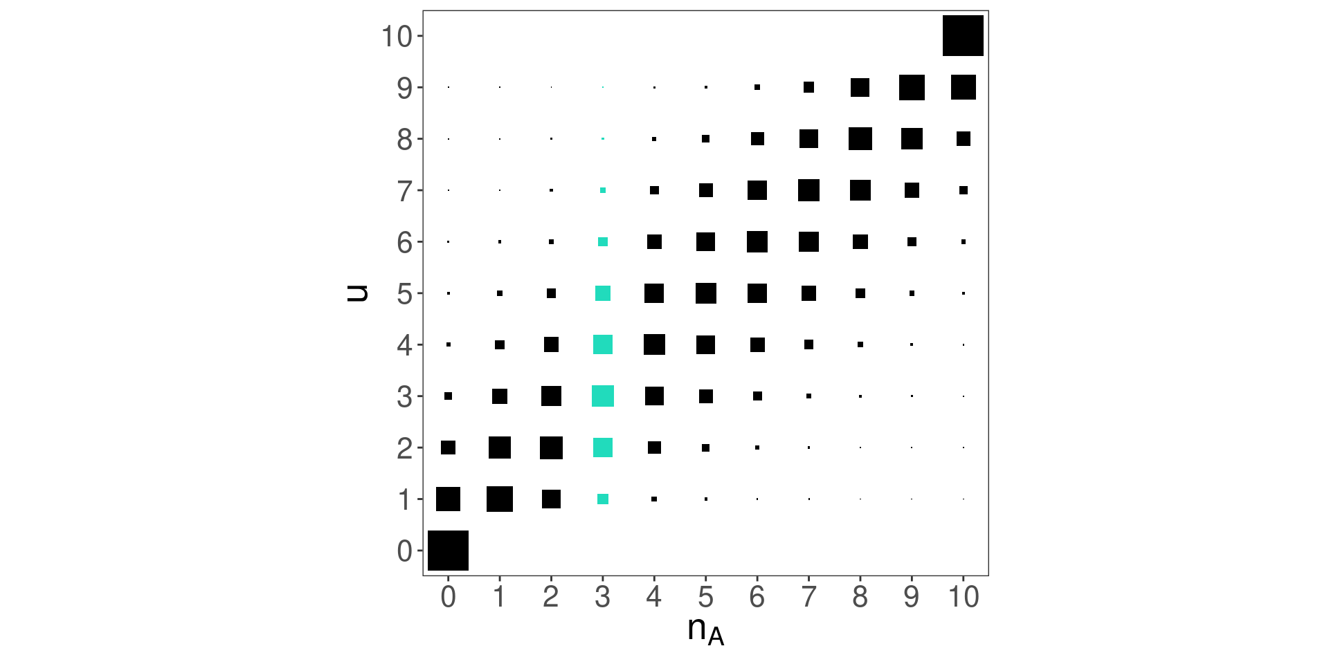 Podemos escribir la probabilidad de \(u\) condicionada a \(n_A\):