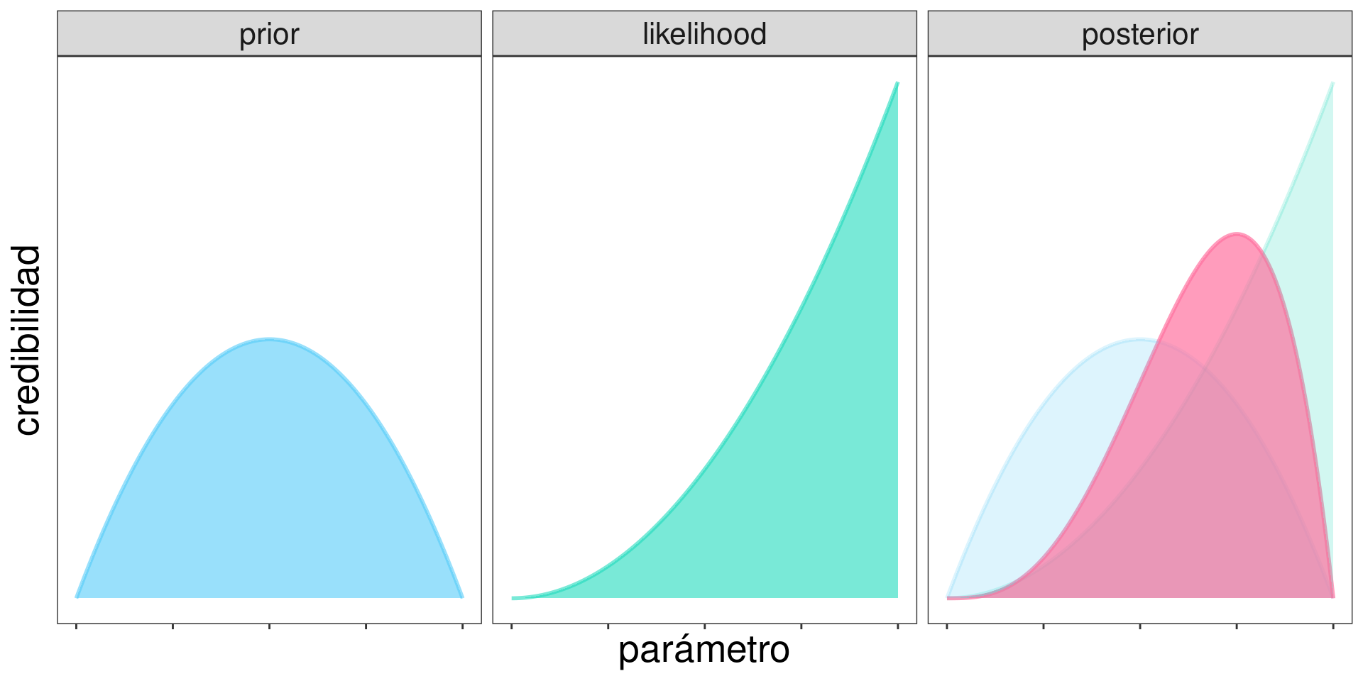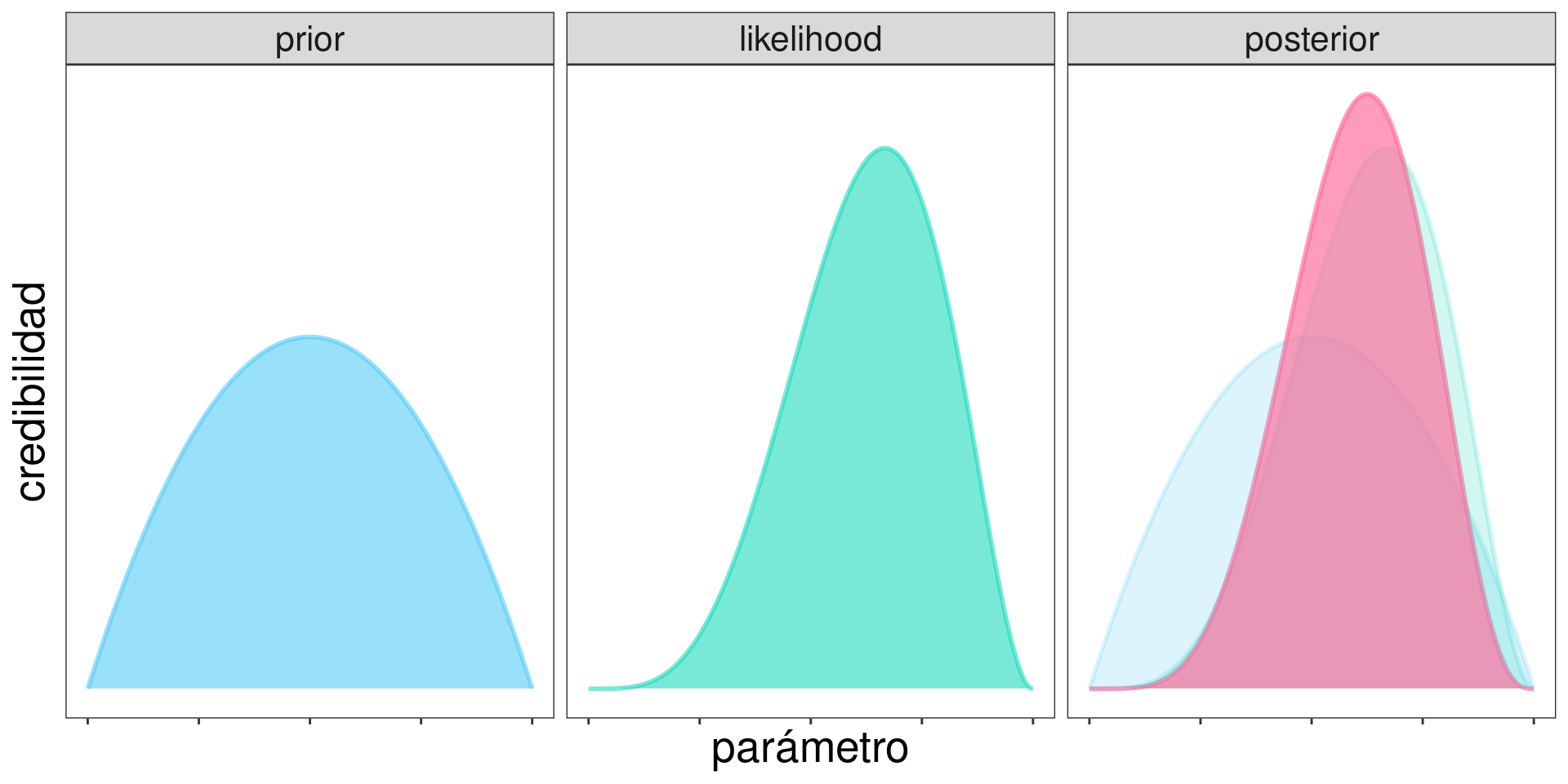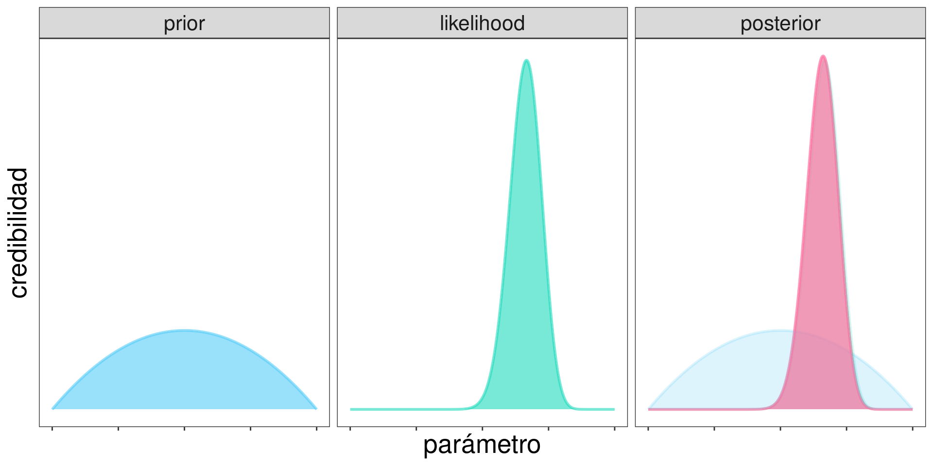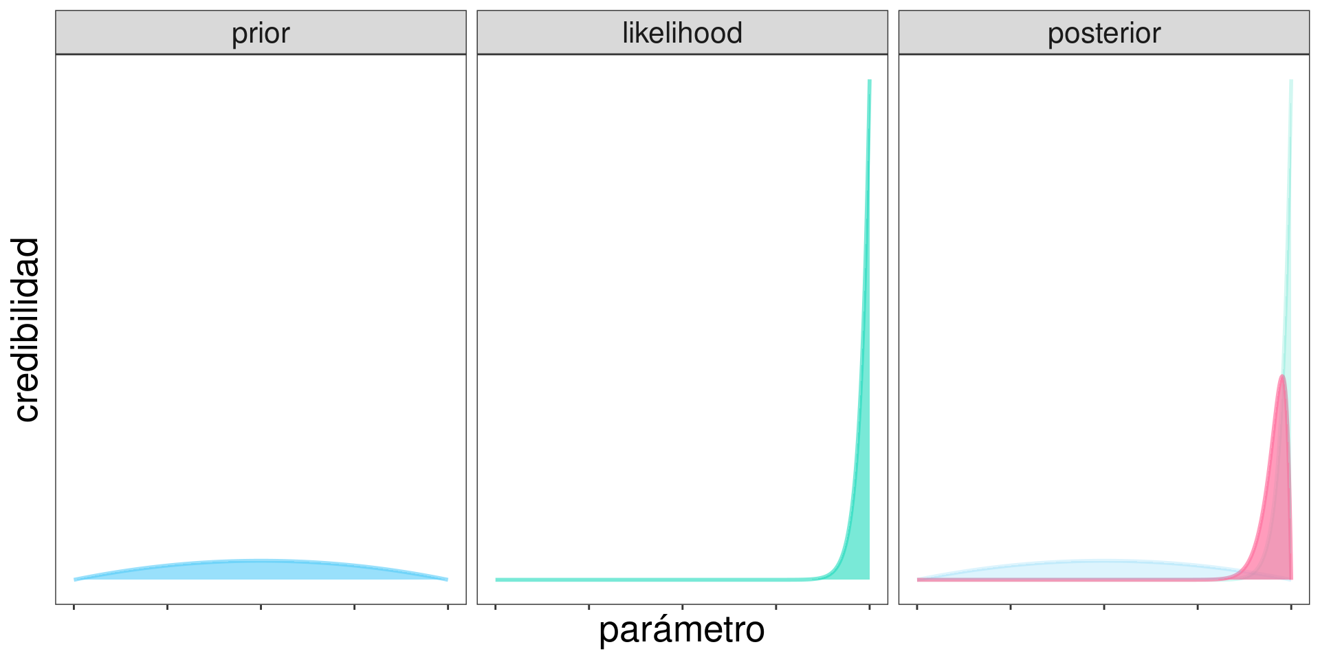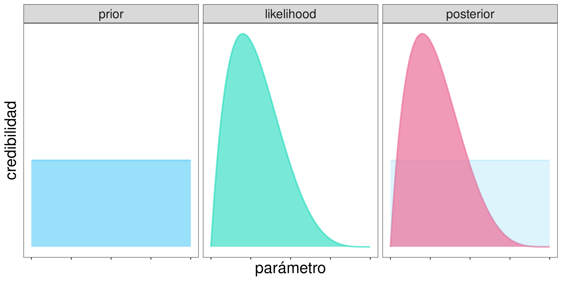 Recordando que: \[ \mathrm{posterior} \propto \mathrm{prior}\times\mathrm{likelihood} \]