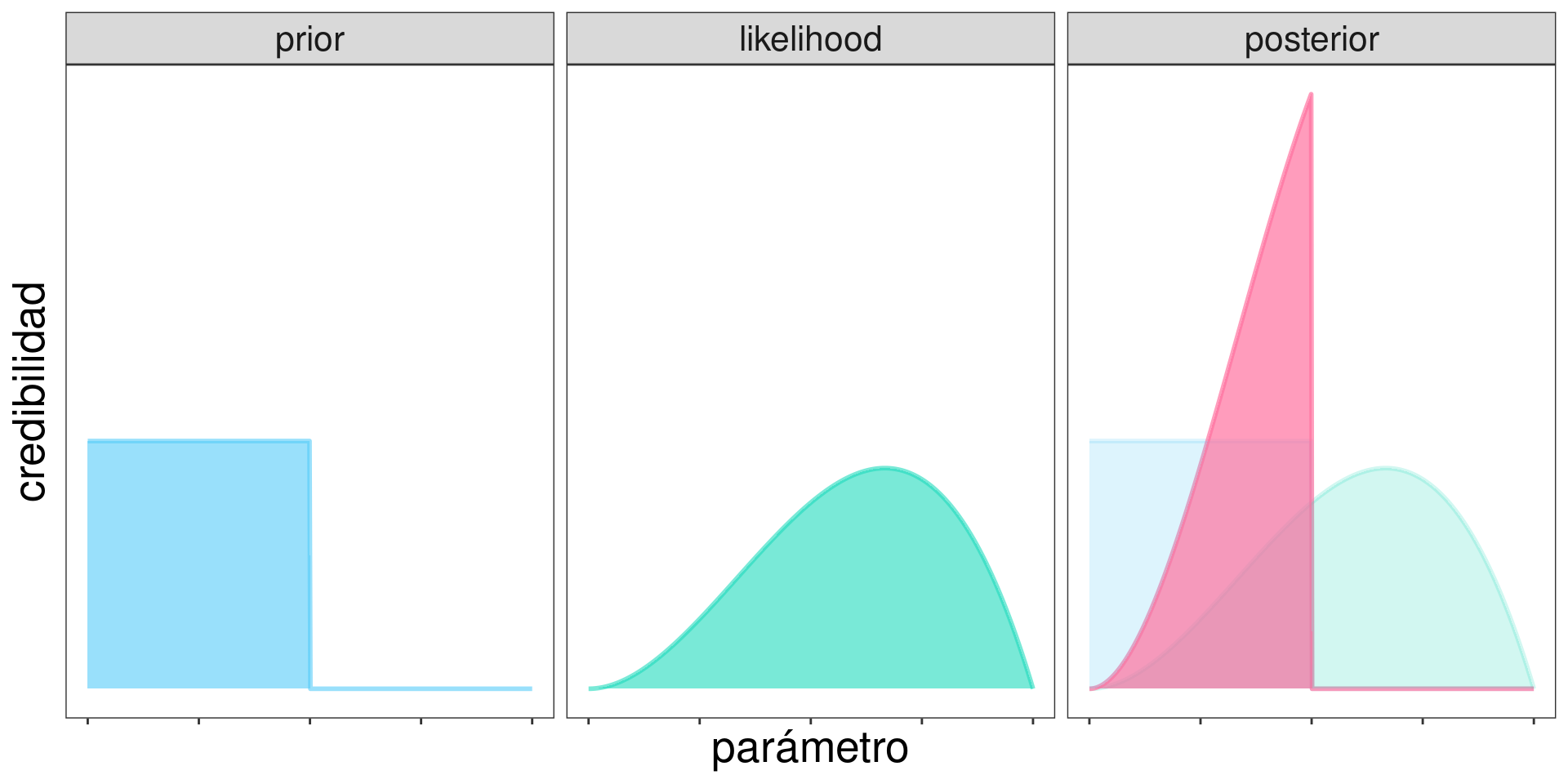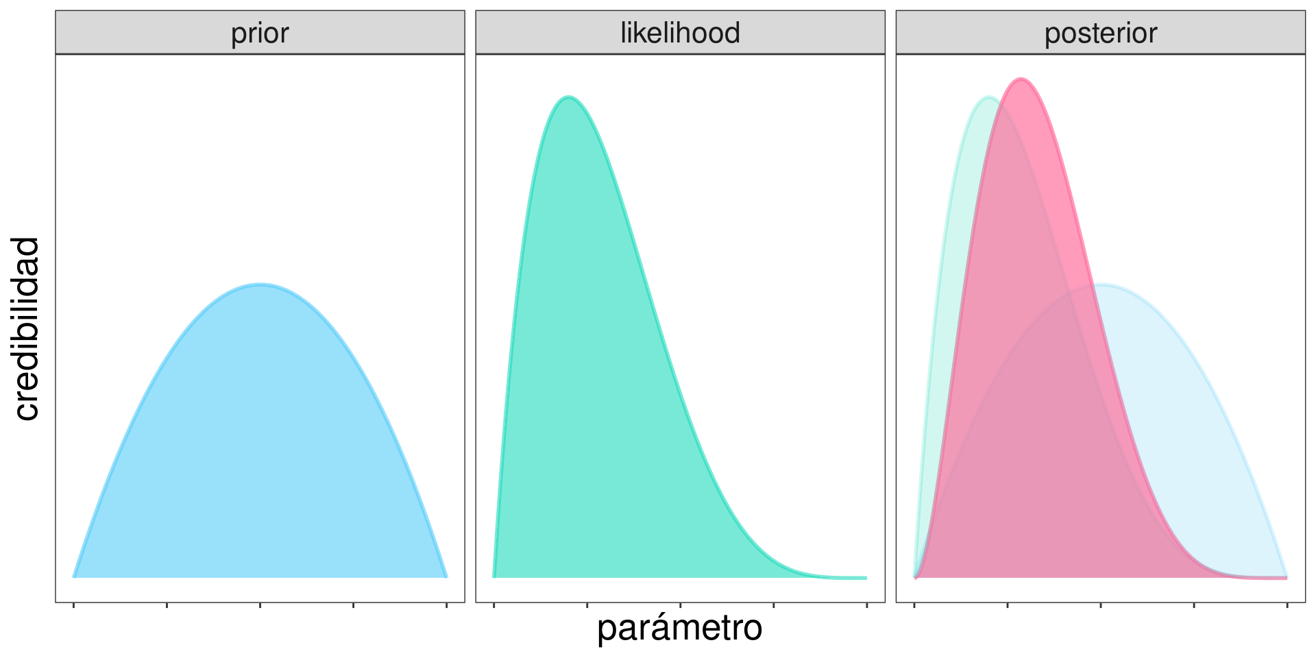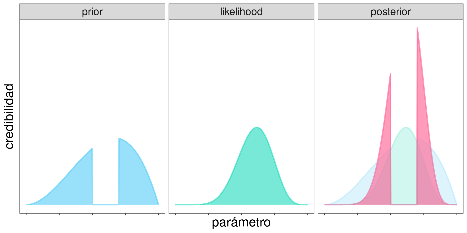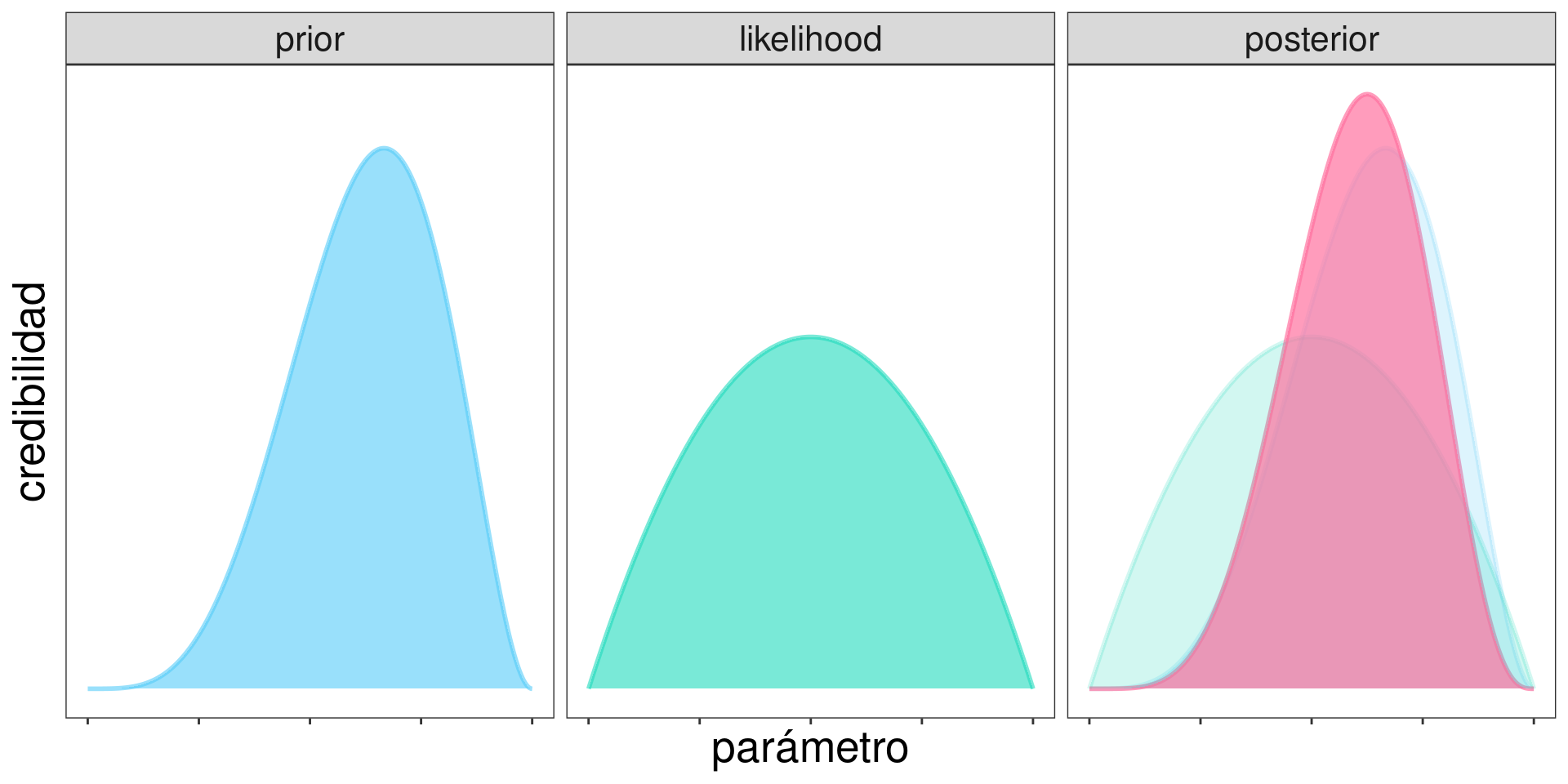 Recordando que: \[ \mathrm{posterior} \propto \mathrm{prior}\times\mathrm{likelihood} \]