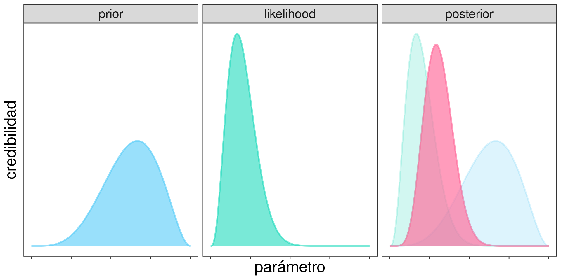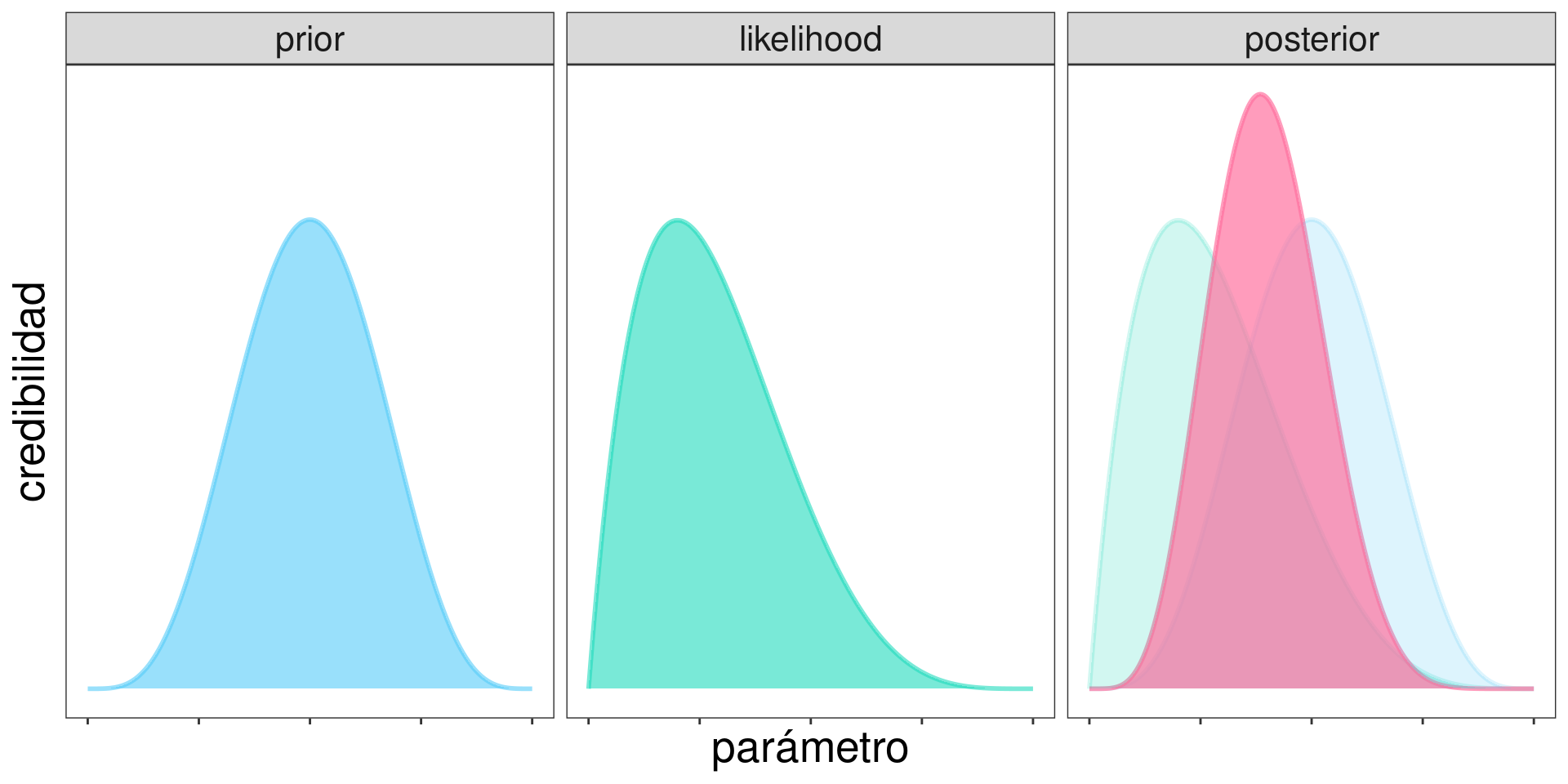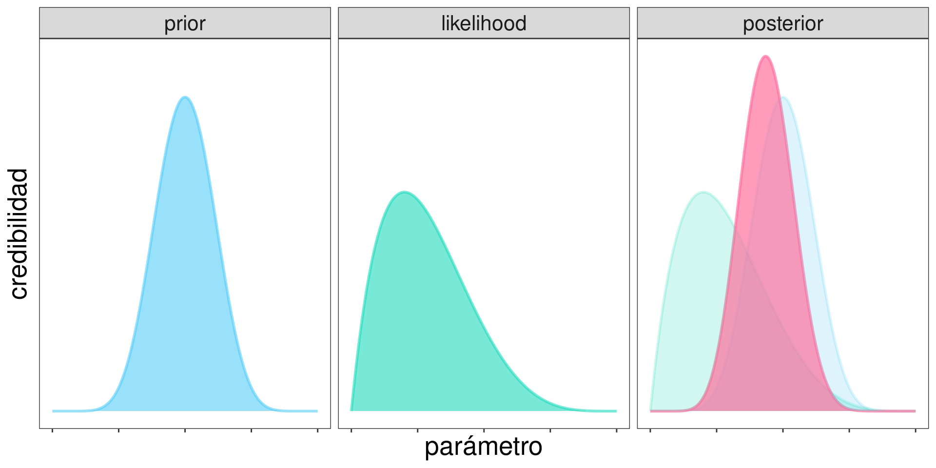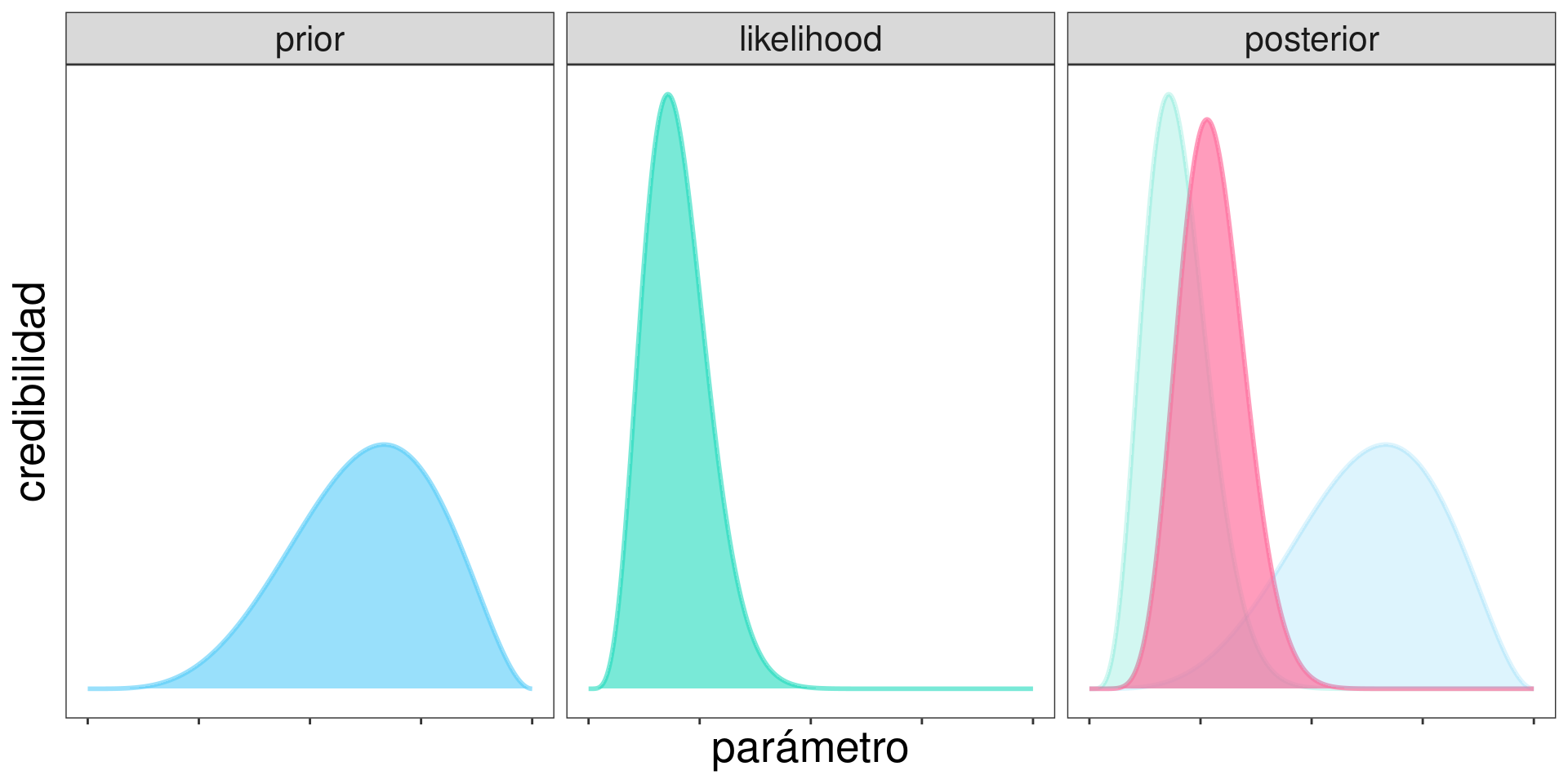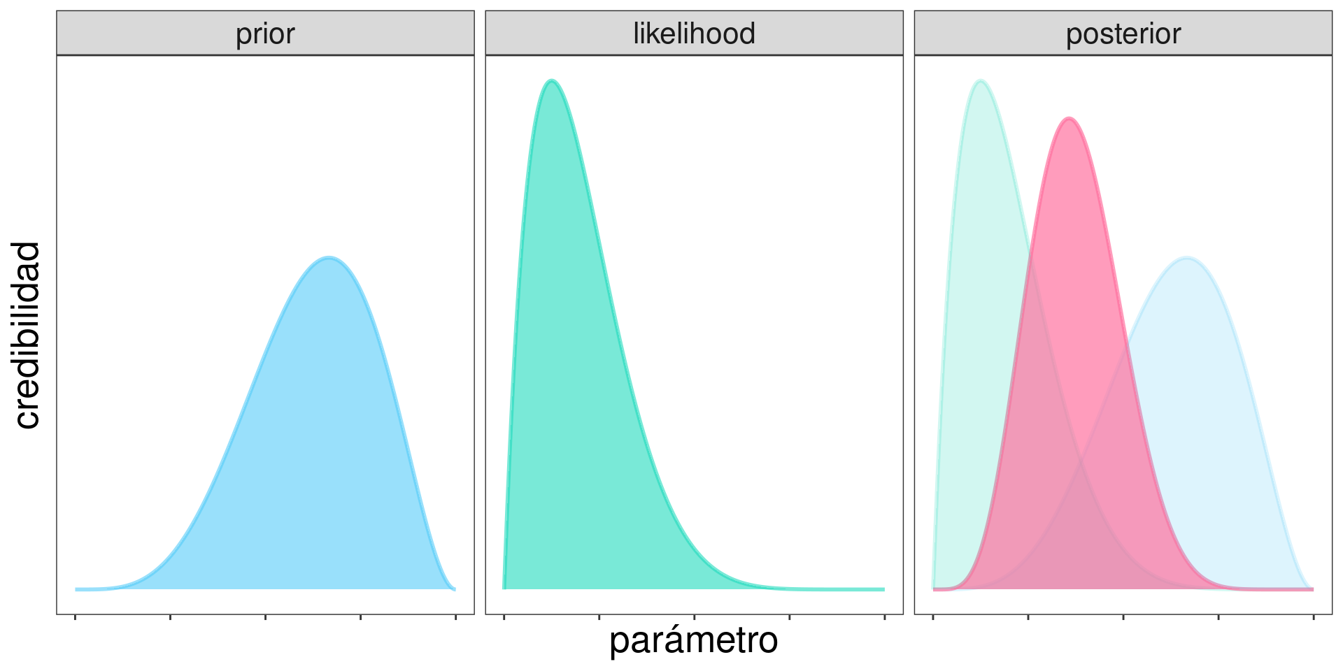 Recordando que: \[ \mathrm{posterior} \propto \mathrm{prior}\times\mathrm{likelihood} \]