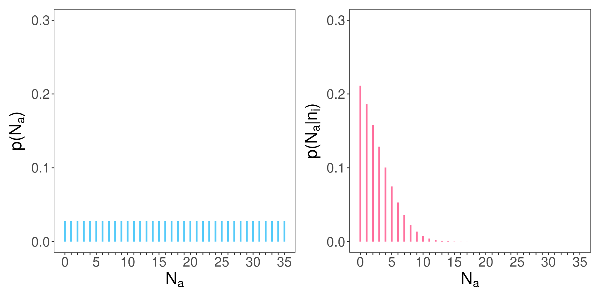 ¿Cómo construimos la verosimilitud de los diferentes valores de \(N_a\) \(p(n_i\mid N_a)\)?