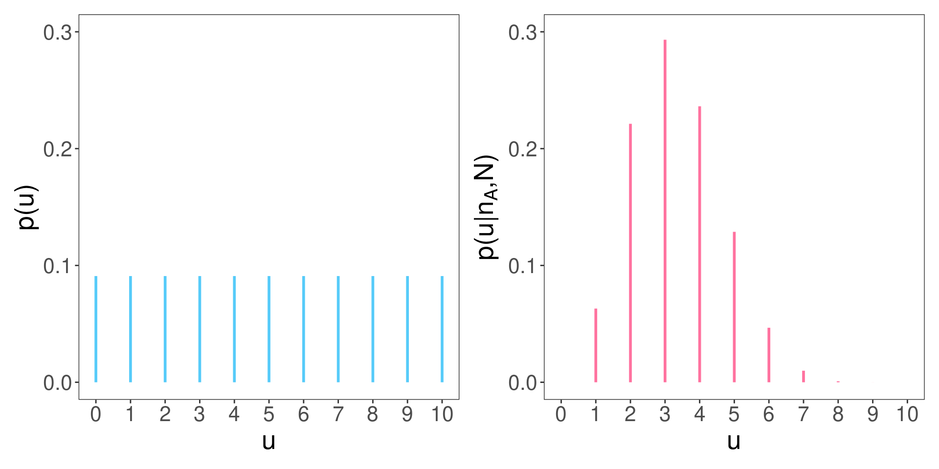 \[p(u\mid n_A, N) = \frac{p(n_A\mid u, N)p(u)}{p(n_A\mid N)}\]