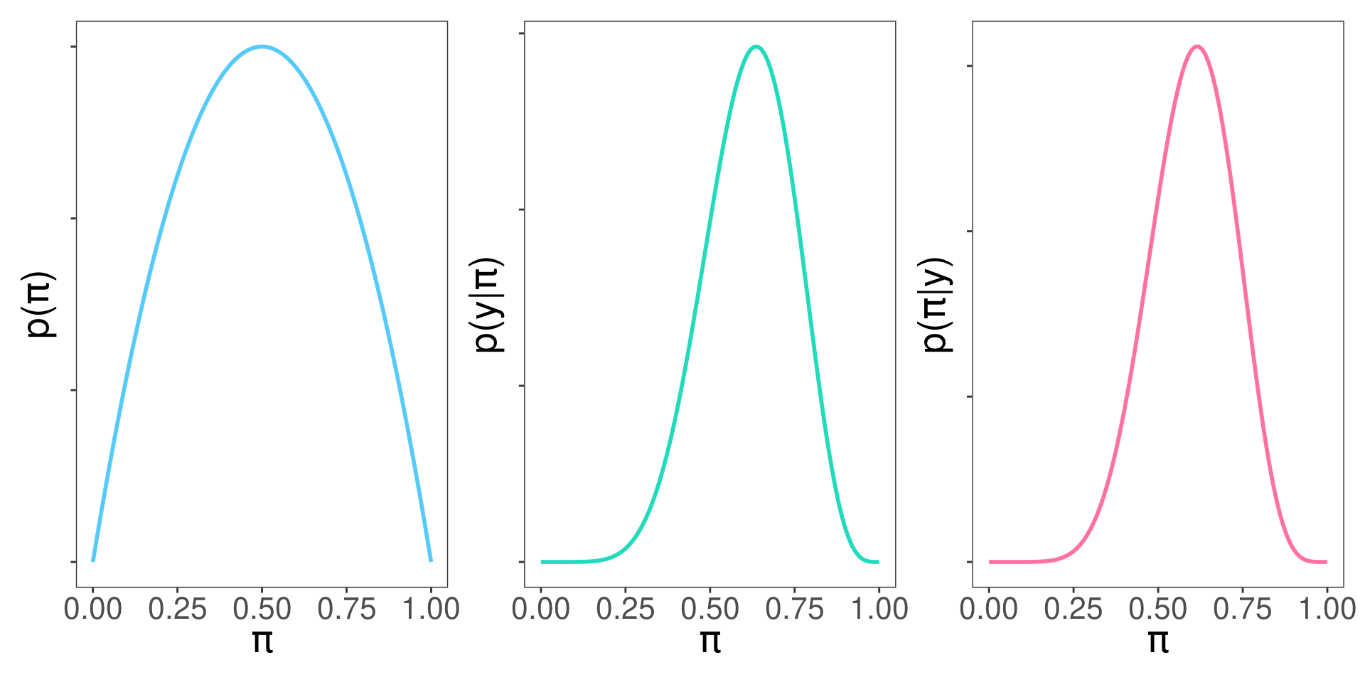 Resulta \[p(\pi\mid y) \propto p(y\mid\pi) p(\pi)\]