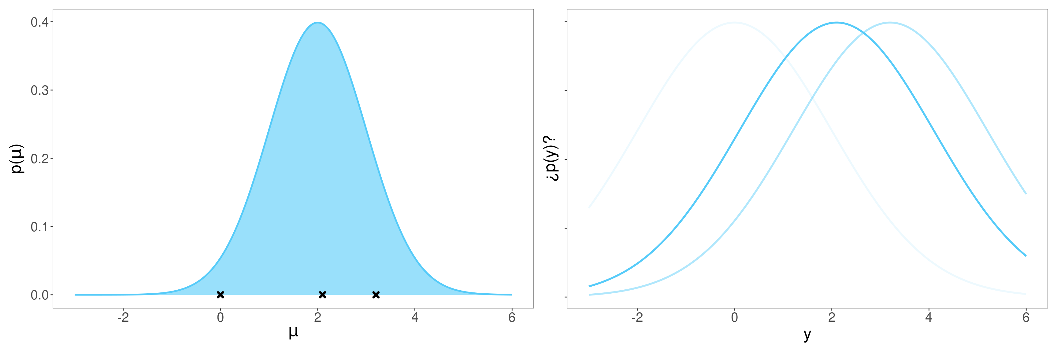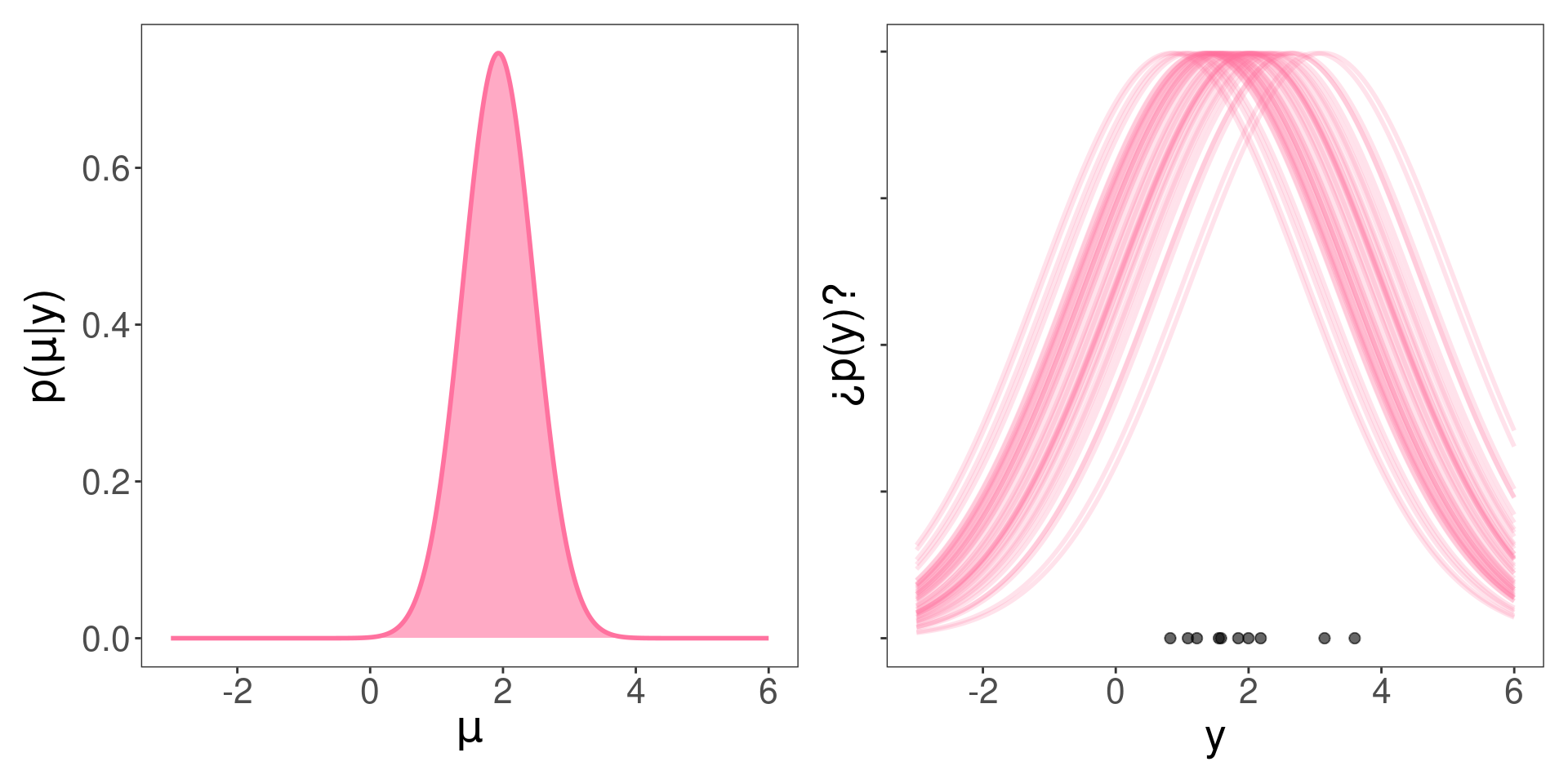 Interesa hallar \(p(\mu \mid \mathbf{y})\)
