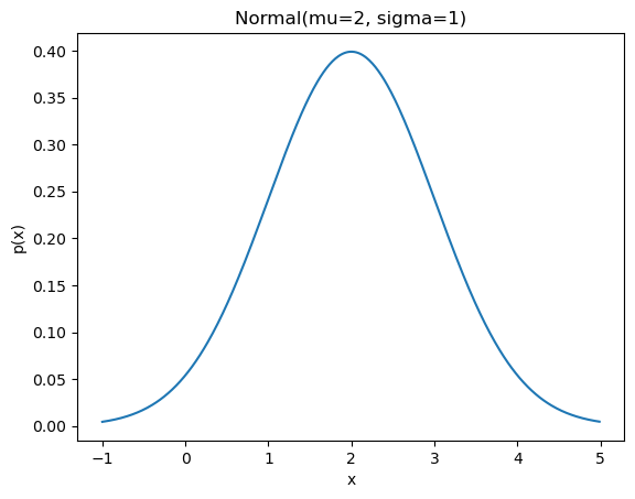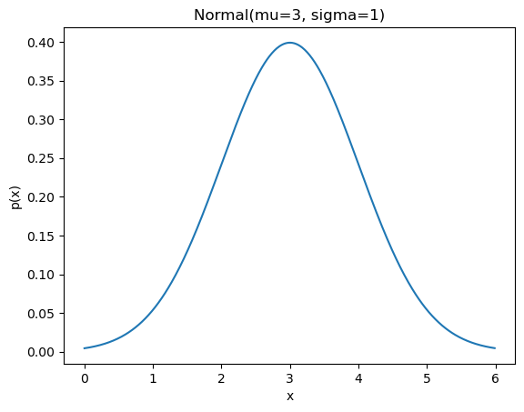 plt.ylabel("p(x)")Si combinamos Distribucion y Continua, tenemos la base para implementar nuestra clase Normal.