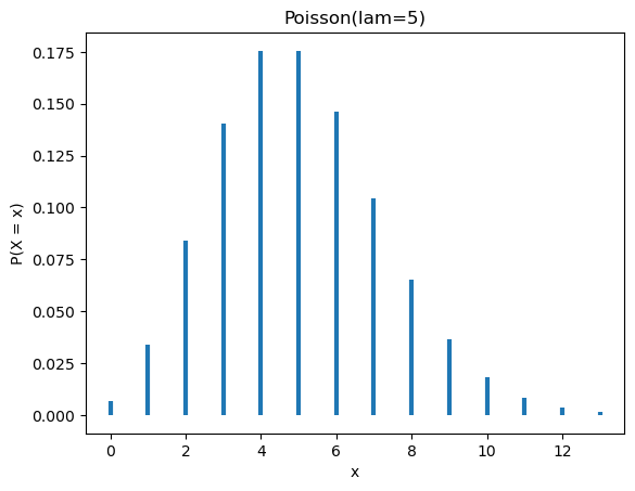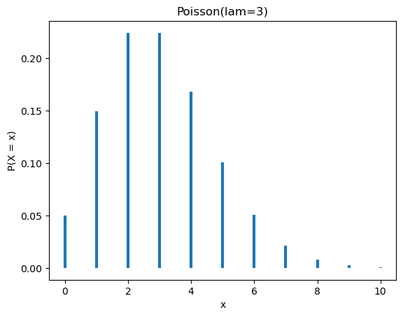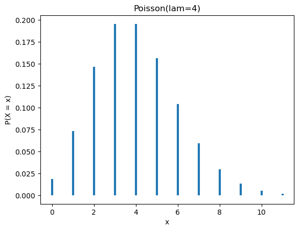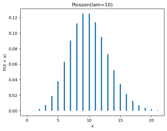 Para inicializarla vamos a usar el parámetro \(\lambda\), que representa tanto la media como la varianza. Pero, como lambda es una palabra reservada en Python, usaremos su versión abreviada lam.