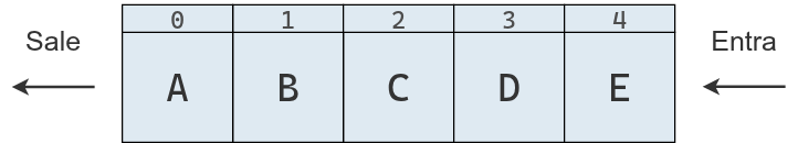 En comparación, cuando usamos un arreglo para almacenar los elementos, agregar un nuevo valor al final tiene un costo \(O(1)\), pero extraer desde el principio requiere mover los \(N - 1\) elementos restantes, lo que implica un costo \(O(N)\).