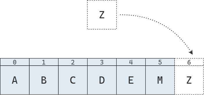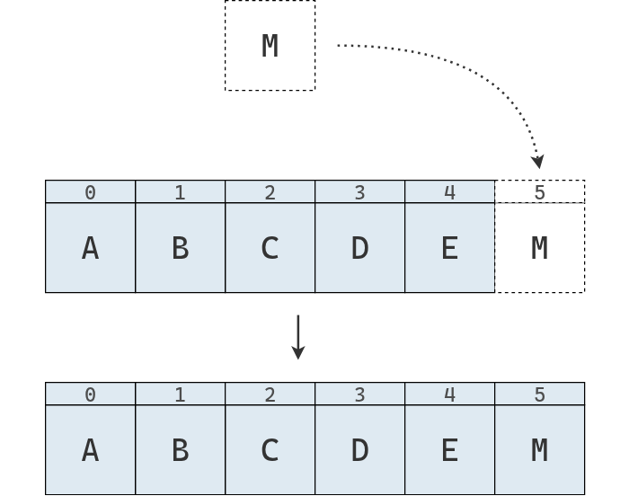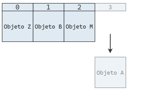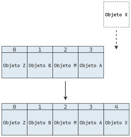 Cuando insertamos un elemento, lo hacemos al final del arreglo, extendiendo su longitud: