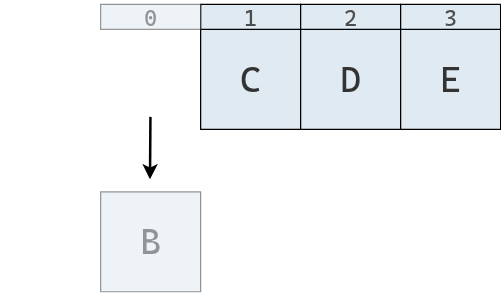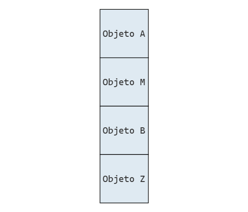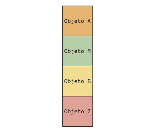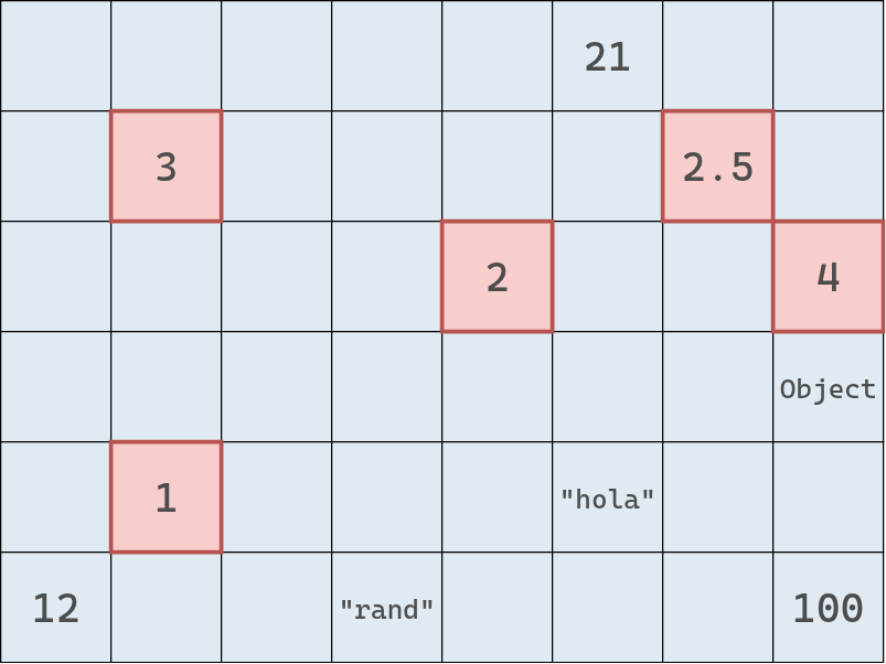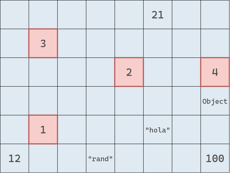 donde cada caja representa un objeto en memoria. Como ninguna celda tiene propiedades especiales, utilizamos el mismo color para todas: