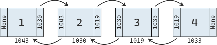 nodo1 = Nodo(1)nodo2 = Nodo(2)nodo3 = Nodo(3)nodo4 = Nodo(4)# Enlazar nodosnodo1.siguiente = nodo2nodo2.siguiente = nodo3nodo3.siguiente = nodo4 # Recorrer e imprimir la lista enlazadaactual = nodo1while actual:print(actual, end=" -> ") actual = actual.siguienteprint("None")