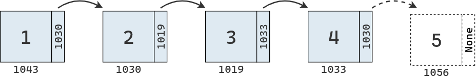 Cuando trabajamos con un arreglo contiguo, vimos que podíamos determinar la dirección de cualquier elemento a partir de la dirección base y el índice solicitado. En cambio, en una lista enlazada, los nodos no están almacenados contiguamente en memoria, por lo que ya no podemos usar esa estrategia.
