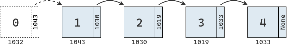 Supongamos que queremos leer el valor en el índice 3 de una lista enlazada. Nuestro programa solo conoce la dirección del primer nodo de la secuencia. Para ubicar el nodo en el índice 3, debe recorrer la lista pasando por todos los nodos intermedios, saltando de uno a otro a través de sus enlaces, hasta llegar al nodo correspondiente y devolver su valor.
