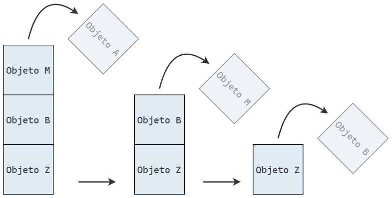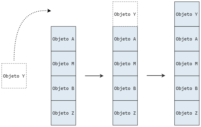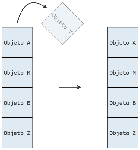 La siguiente figura representa la eliminación de Objeto Y de la pila.